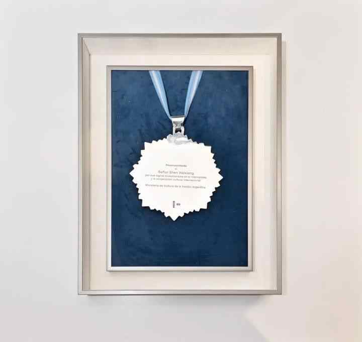 阿根廷本屆政府向中央廣播電視總台台長頒授的「國際人文交流合作傑出成就獎」獎章為925純銀製成,主體直徑13厘米,為阿根廷知名銀飾設計師帕塔卡之作。