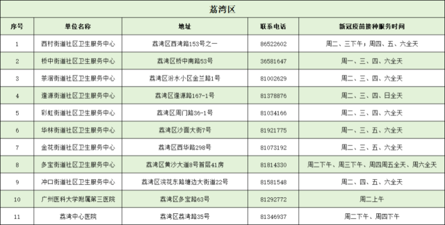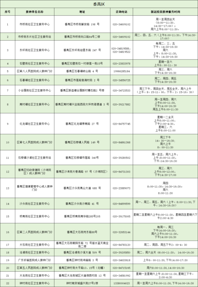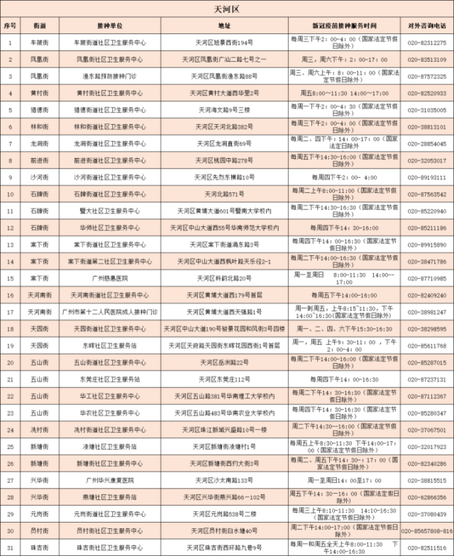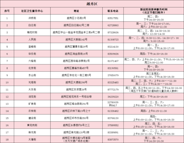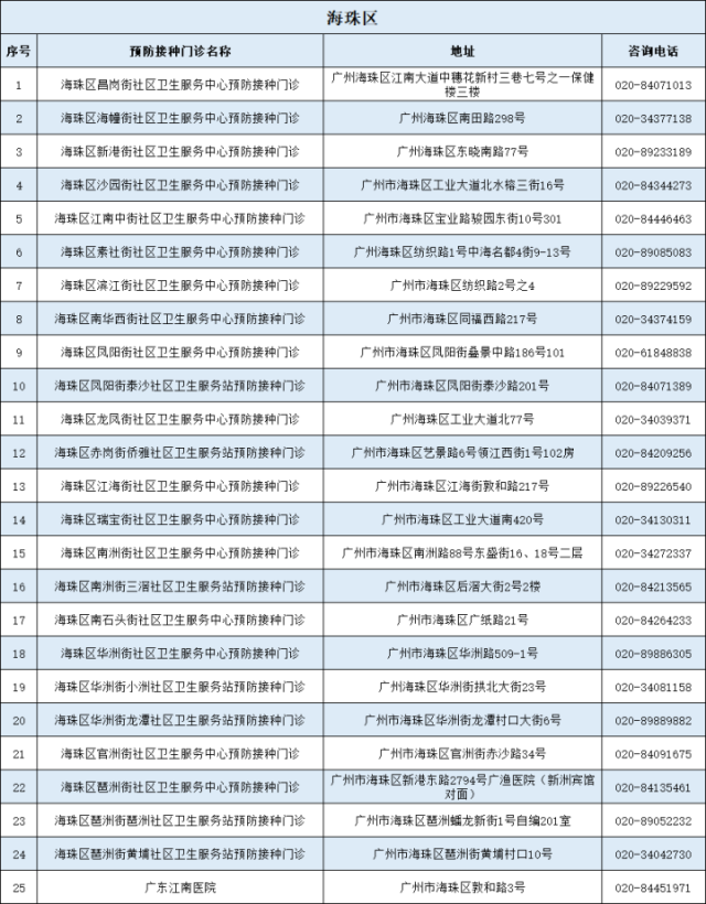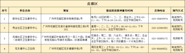 广州市共有127家预防接种门诊提供XBB疫苗接种服务,市民们除了网上预约外,也可以直接咨询各接种单位,详见下表。