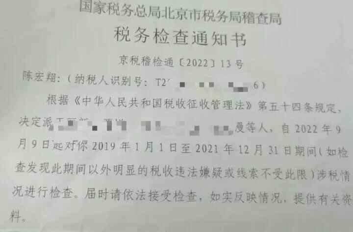 陈志朋称,2022年9月收到了发来的税务检查通知书,“在收到通知书后,我积极响应税务局的要求,主动的提供了我的银行流水等资料与信息,并多次前往税务局配合调查,以便税务局做出最终决定”。