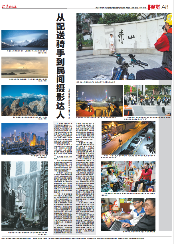 跑同城配送时,欧海冰把广州跑遍了。从越秀荔湾到花都,广州城内遍布着欧海冰的足迹,与之相对应的是他的摄影作品几乎涵盖了广州城。在欧海冰看来,一片区域能拍多少张照片,除了当地本身的人文与风光景物外,还要看那边的人口密度、道路建设情况。