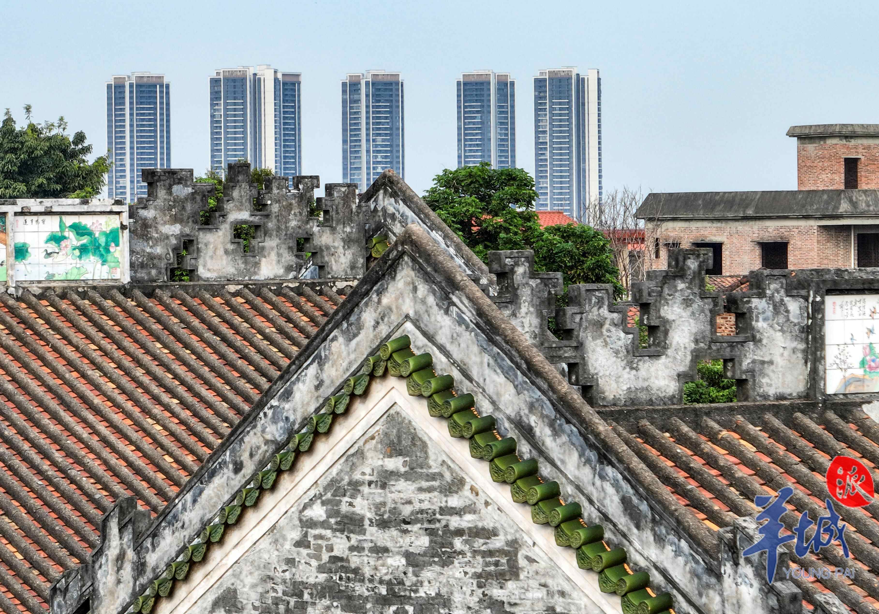 沿着斑驳的石板路,穿梭在古巷中,巷子两边的许多的灰色砖石搭建的老屋静静沉淀着厚重的历史和文化。来到陈氏宗祠,白墙黄瓦、绿瓦当,起伏的屋脊、精致的灰塑,足见匠工巧思。宗祠前竖立着代表功名的旗杆,记录着被称为“西江第一留洋博士”陈焕章给岛上带来的荣光。白墙上水墨色的水痕,屋脊上星星点点的苔藓见证着时光。