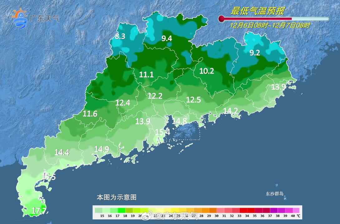 5日,全省大部多云到晴。最低气温:粤北和珠江三角洲北部市县8~12℃,珠江口附近和粤西市县16~19℃,其余市县13~16℃。