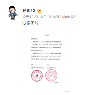 12月5日,杨鸣和前妻唐佳良都在个人社交账号上宣布离婚。声明中写道:“感谢大家的关心,杨鸣先生与唐佳良女士已和平解除婚姻关系。分开是两个人对生活共同的抉择,感恩有过的美好时光,祝福彼此未来皆是坦途。未来两人将继续承担父母责任,抚育孩子健康成长给予孩子加倍的爱和陪伴。在此谨代表杨鸣先生与唐佳良女士,对占用公共资源表示歉意,同时也希望大家给予孩子们更多的保护。因此在做出以上声明后,双方将不再回应此事,希望大家理解。再次感谢大家的关心与支持!”