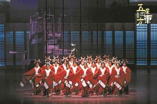 央视兔年春晚上,一段名曰“锦绣”的舞段曾惊艳了电视机前亿万观众,它庄重儒雅、活色生香的东方美感感染力十足。该舞段正是出自将于2024年1月4至5日在广州上演的舞剧《五星出东方》。《五星出东方》的构想和题材,来源于新疆和田地区民丰县尼雅遗址出土的“五星出东方利中国”织锦护臂。这种艺术真实与历史真实的融合,给观众带来了既有历史厚重感、又有观演轻盈感的独特感受。该剧也荣获了中宣部“五个一工程”优秀作品奖和“文华大奖”殊荣。