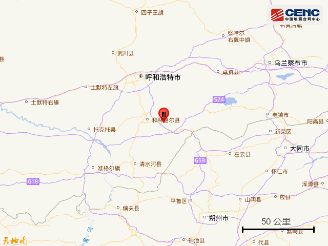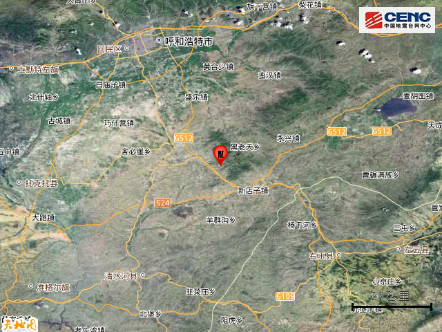 据中国地震台网正式测定:12月6日20时06分在内蒙古呼和浩特市和林格尔县(北纬40.34度,东经111.99度)发生3.3级地震,震源深度16千米。