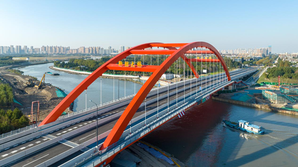 昆山沿沪大道对接上海青浦区胜利路工程在吴淞江上新建一座大桥。昆山市融媒体中心供图