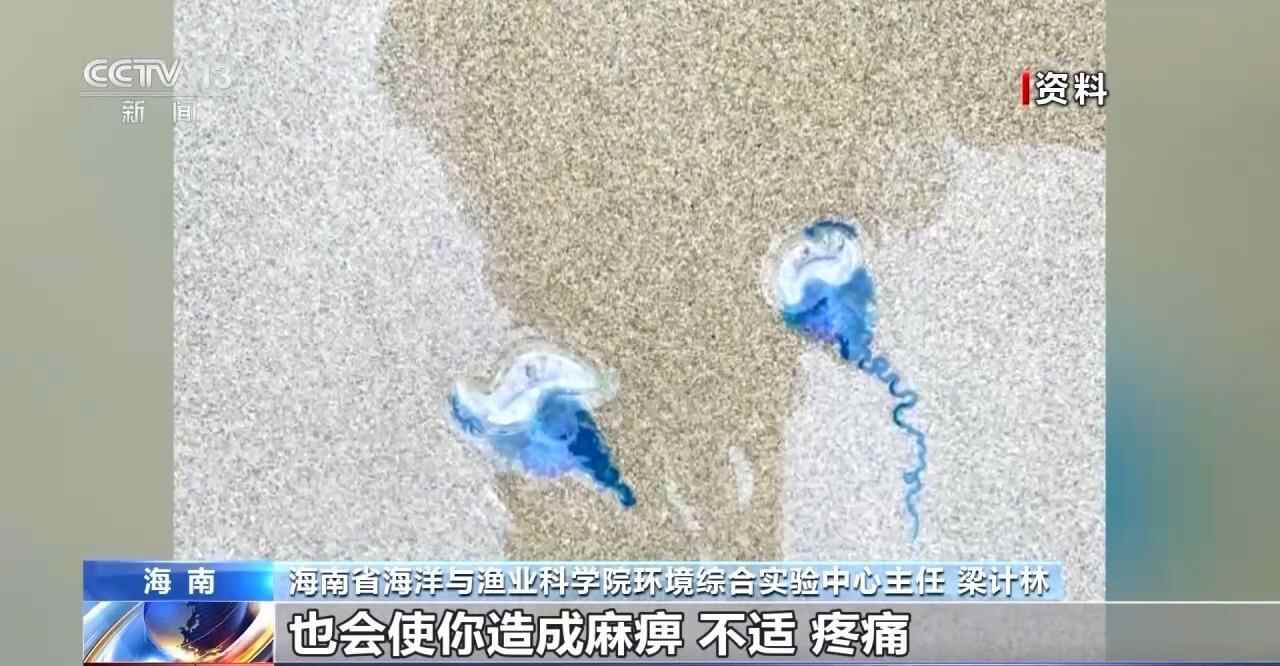 文昌居民 孙女士:我以前有被蜇到过一次,那个是普通水母,就像被一群蜜蜂在你腿上扎,好痛。因为僧帽水母长得很漂亮,蓝色的又有气囊,小孩可能会用手想要去按,蜇一下是很疼很疼的。
