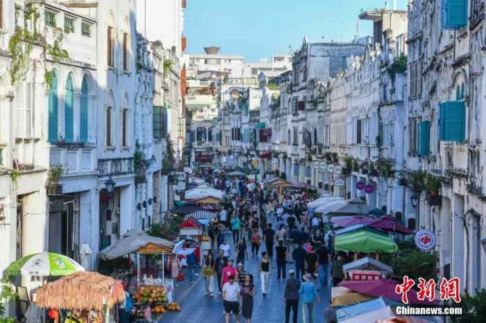图为海口骑楼老街游客如织。中新网记者骆云飞 摄