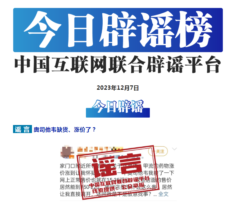 近日,中国互联网联合辟谣平台辟谣“奥司他韦缺货、涨价”等消息。据称,目前“流感神药”奥司他韦供应比较充足,均可即买即送。只是不同产品价格不一,售价最高的是罗氏制药的“达菲”(磷酸奥司他韦胶囊),相同剂型、规格均价显著高于其他同类产品,其他磷酸奥司他韦胶囊和颗粒价格在一盒40~85元不等。