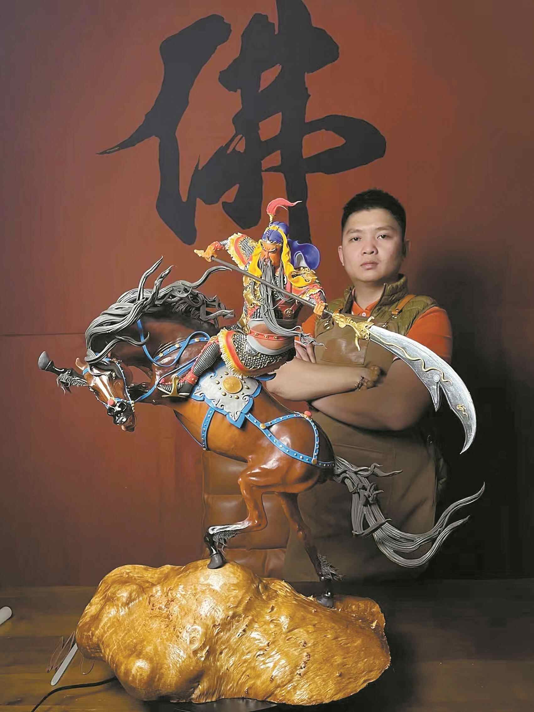 最让李宏天满意的作品,是他在2020年创作的《四大天王》——这是佛教中的四位护法神。由于工艺复杂,《四大天王》的创作周期长达三个月,李宏天甚至在工作室里连续工作了26小时。“当时因为创作比较有激情,自己完全忘记了时间,天黑了又亮,自己始终没感觉到困意,一直处于兴奋的状态。”