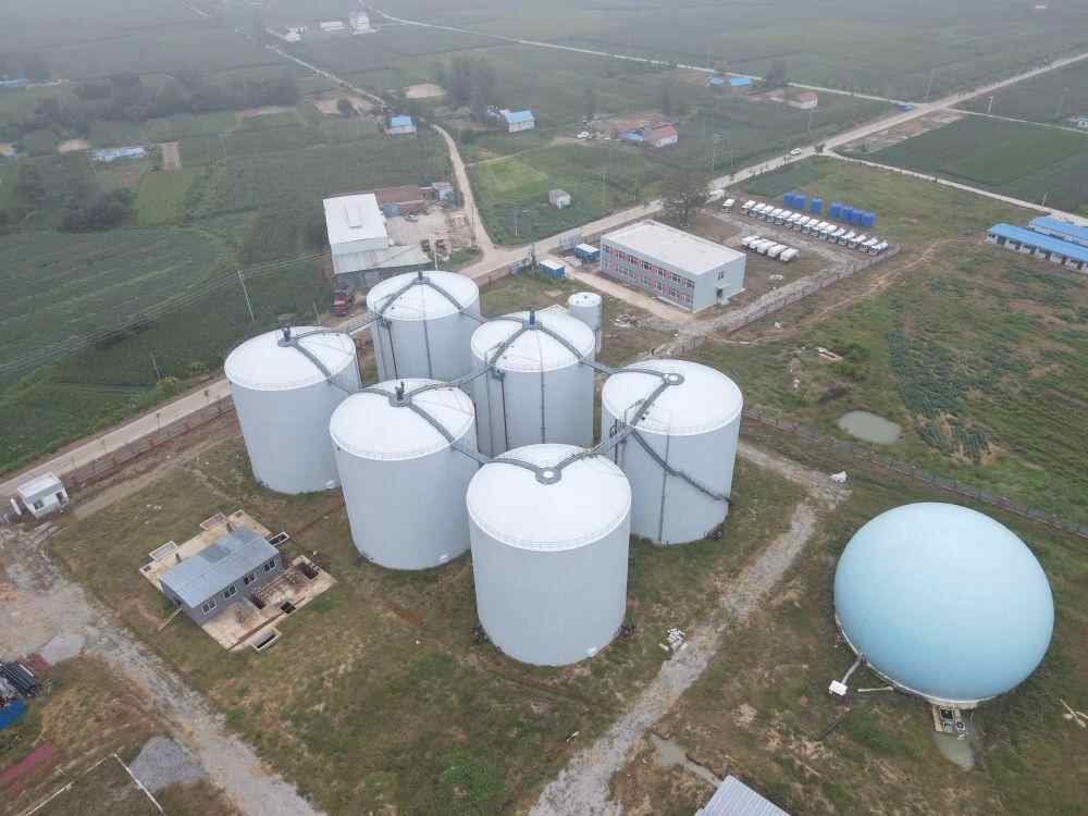 泗洪县魏营镇王拐村西北方向的宽阔草地上,6个20米高的白色反应罐十分显眼。这里是泗洪畜禽粪污资源化利用绿岛项目现场。项目负责人张仁丘告诉记者,畜禽粪污经固液分离后,通过厌氧发酵工艺,产生的沼渣可用于生产堆肥和有机肥,沼液经处理后还田消纳,实现了畜禽养殖与作物种植双向增收。