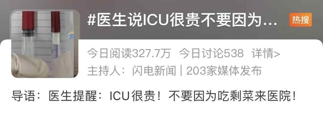 医生表示,不要因为吃剩菜来医院,ICU很贵!