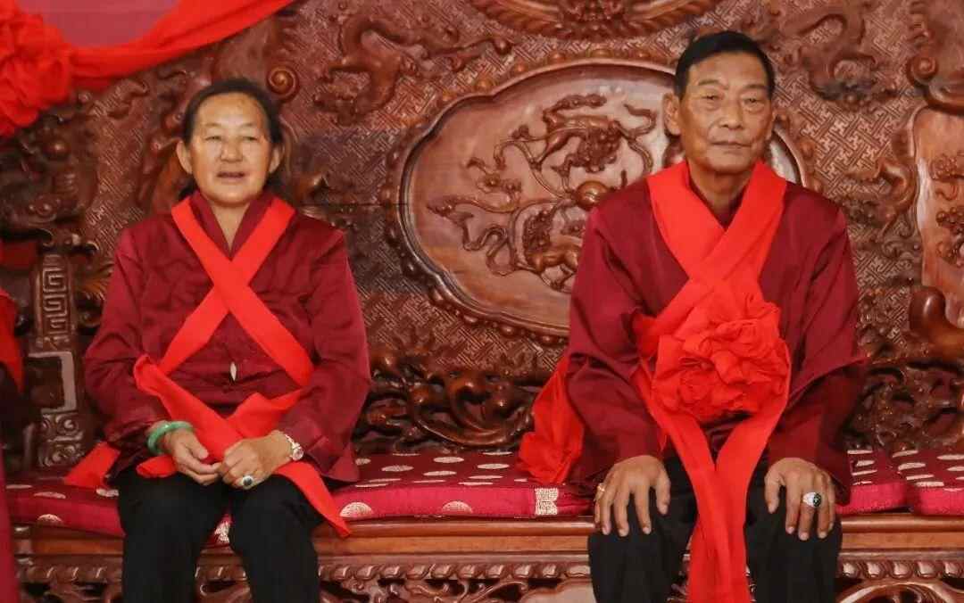 家里人把宅子从里到外都布置成大红色,白所成和妻子也身穿红色的褂子,坐在红木做成的太师椅上,接受他人的祝贺。