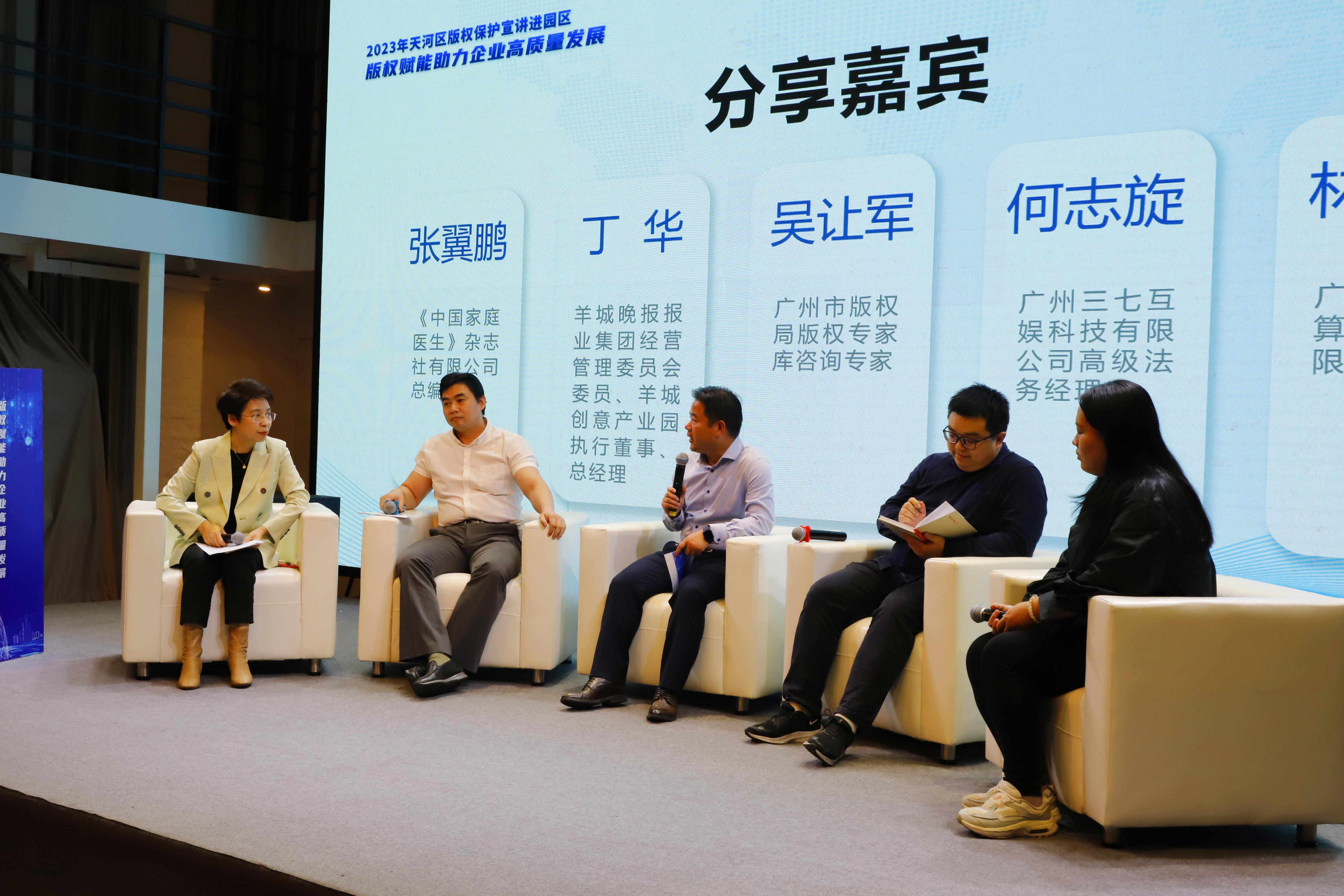 作为广州经济“第一大区”,天河区吸引了众多科技、文创产业等在此落户,保护版权就是保护企业的“命脉”。天河区委常委、区委宣传部部长饶洁怡指出,近年来,天河区作品著作权登记数量连续位居全市榜首,通过不断强化企业自主创新,提升辖内园区、企业版权保护意识,挖掘培育了一批优秀的版权示范单位和版权示范园区。如“全国版权示范单位”广州中望龙腾软件股份有限公司的“中望3D软件”获得中国版权金奖“作品奖”,这是我国版权领域的最高奖项。活动所在的羊城创意产业园被授予“全国版权示范园区”称号,园区龙头企业广州酷狗计算机科技有限公司被评为“全国版权示范单位”,此外还有广州三七互娱科技有限公司、《中国家庭医生》杂志社、广州荔支网络技术有限公司等一批广东省版权示范单位,通过发挥园区和企业的示范作用,助推营商环境持续优化,持续赋能天河高质量发展。