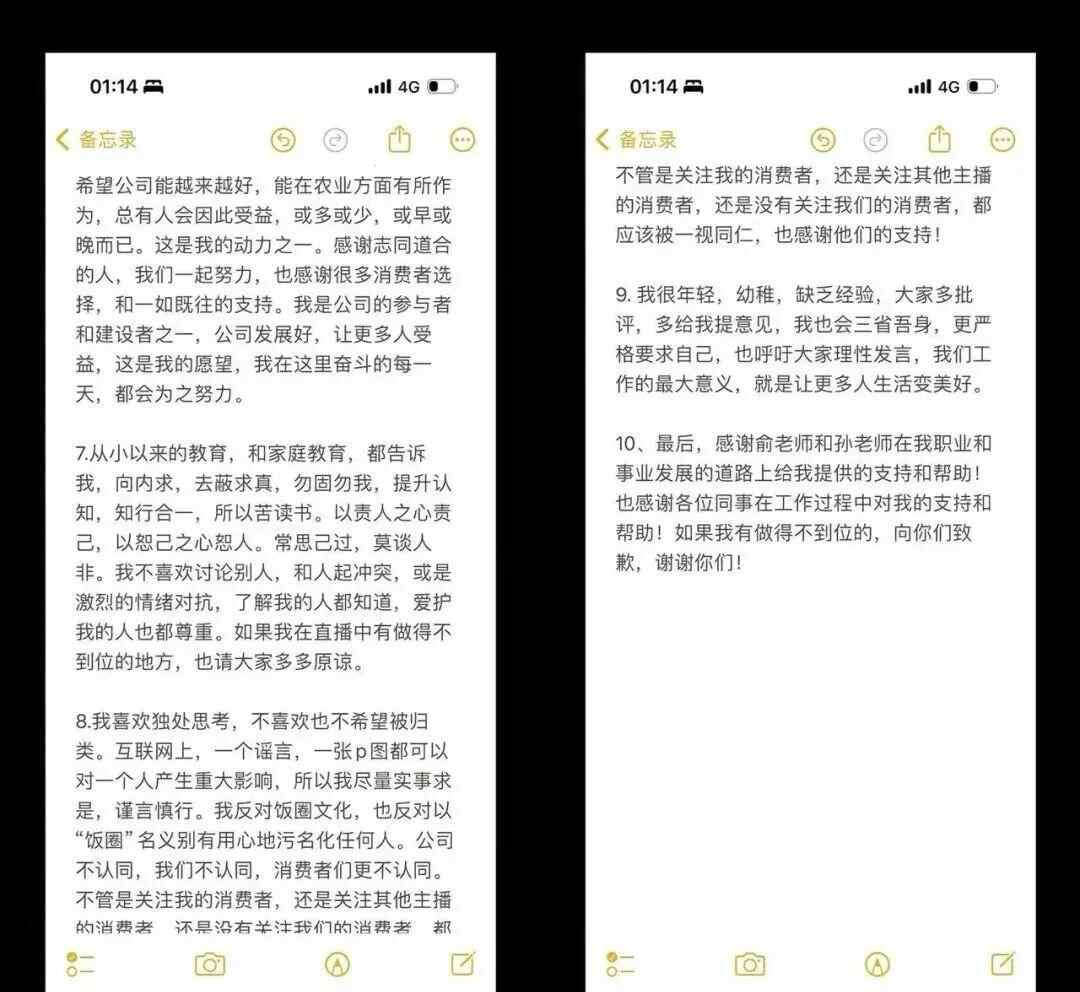 12月13日,据董宇辉抖音号,董宇辉发布长文回应了“小作文”一事。