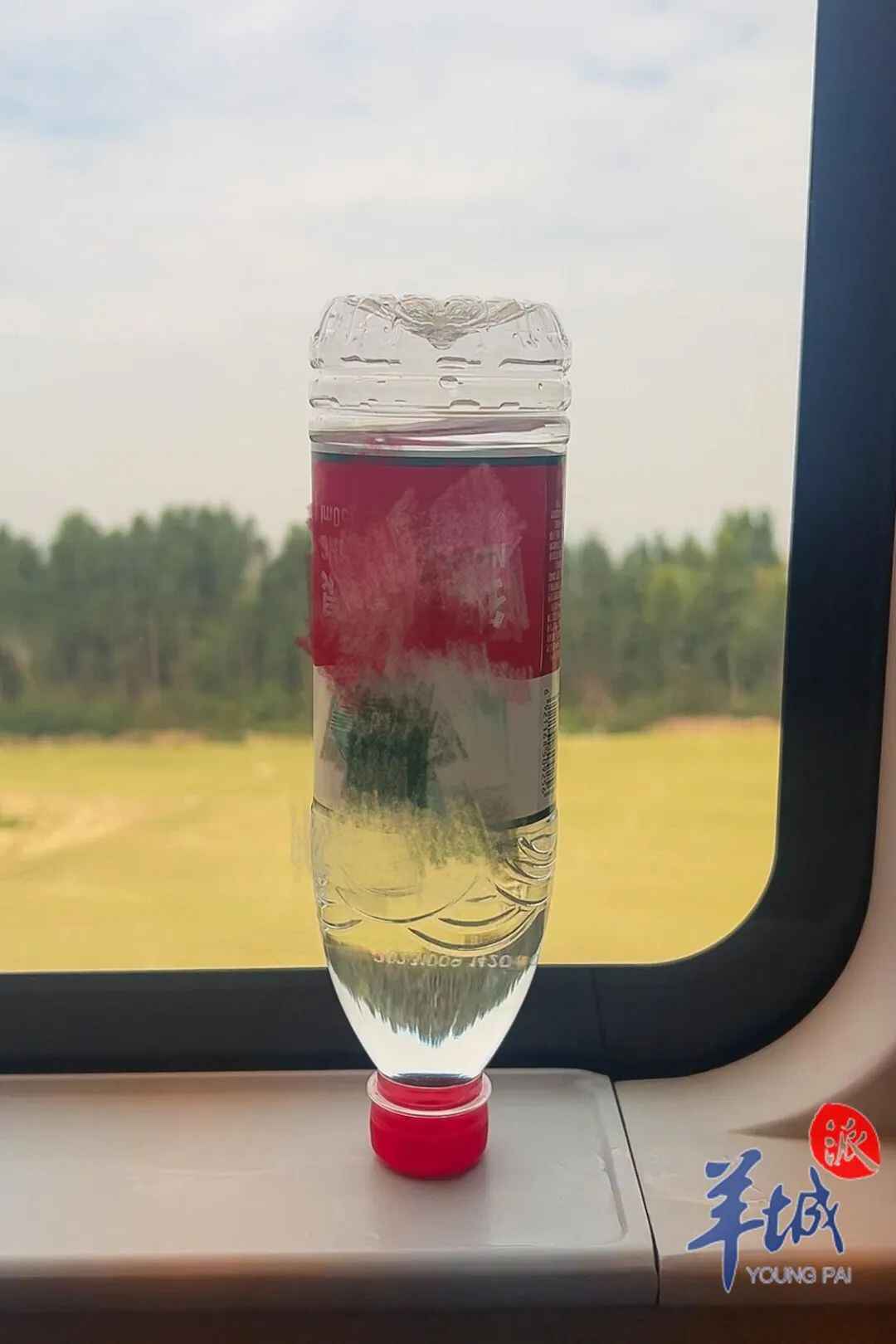 时速三百多公里的列车上,水瓶倒放在窗台上都稳稳立住