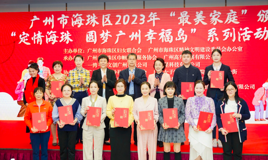家是最小国,国是千万家。为了传播家庭文明正能量,引导广大家庭建设好家庭、涵养好家教、传承好家风,12月14日下午,在琶洲保利世贸博览馆2023广州国际婚纱礼服行业展览会现场,海珠区妇联、海珠区文明办联合举办了2023年“最美家庭”颁授暨“定情海珠 圆梦广州幸福岛”系列活动启动仪式。