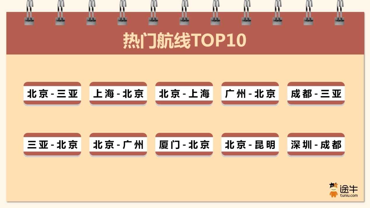机票方面,航旅纵横大数据显示,截至12日,元旦假期国内机票预订量超过120万,比一周前增长近45%,比去年同期预订量增长约23%;途牛元旦假期机票预订量同比增长1.5倍,其中北京-三亚、上海-北京、广州-北京等线路热度最高。