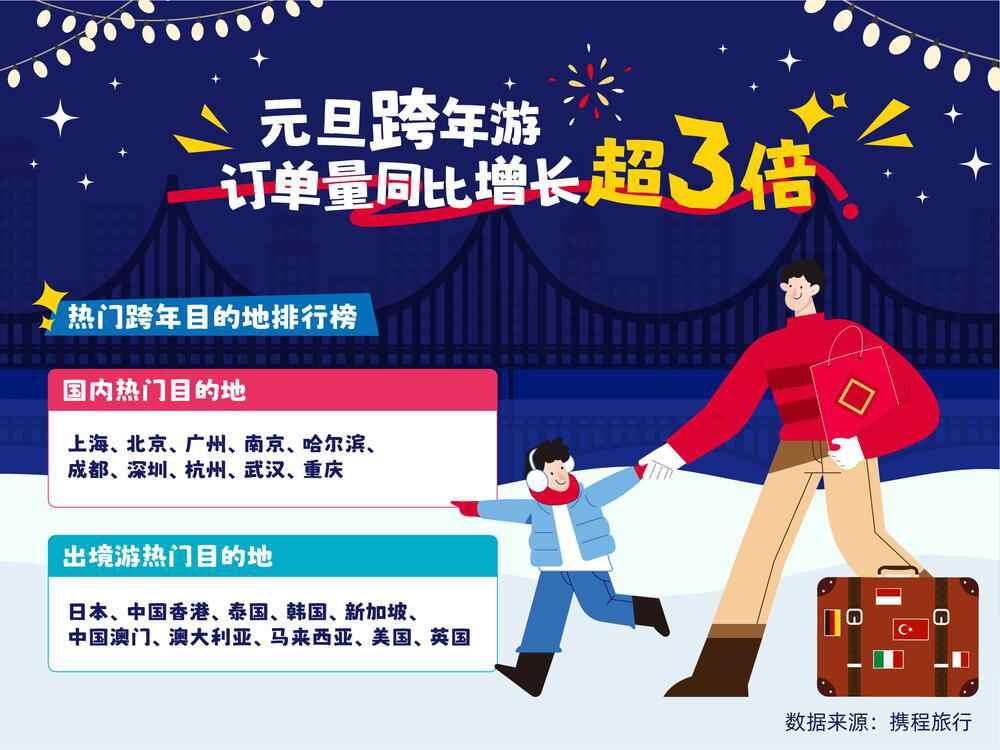 近期出入境管理政策持续优化,极大便利了中外人员往来,元旦出入境游均快速升温。截至15日,携程平台上元旦假期出境游预订订单量同比增长近5倍,日本、中国香港、泰国、韩国、新加坡、中国澳门、澳大利亚、美国、马来西亚、英国入围出境游热门目的地前十。
