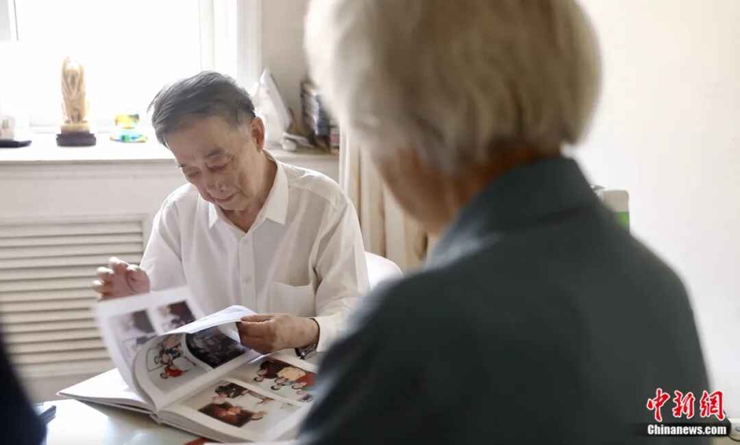 6月25日,陈为江在北京家中与太太郭秀珊翻看相册。中新社记者 李雪峰 摄