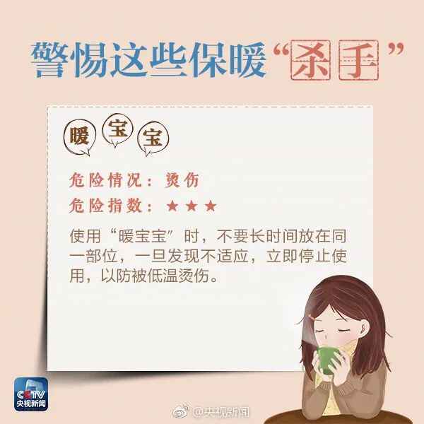 冷空气袭来,许多人为御寒用上各种保暖“招数”,贴暖宝宝、焐热水袋、戴围巾……但你知道吗?在用这些东西取暖时,可能暗藏着危险。御寒有讲究,这份实用宝典,转发提醒身边人!