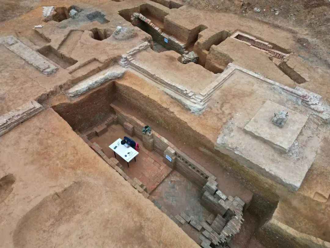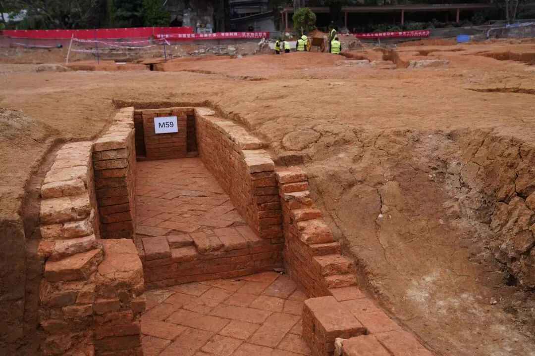 此次清理的古代遗迹绝大多数受现代建筑基础影响,保存状况一般。墓葬分布相对集中,存在晚期墓打破早期墓的现象。已清理的70多座古墓葬中,晋南朝时期墓葬均为砖室墓,数量较多,部分规模较大,精心营造,设有长排水沟,但多被盗扰、出土器物较少。