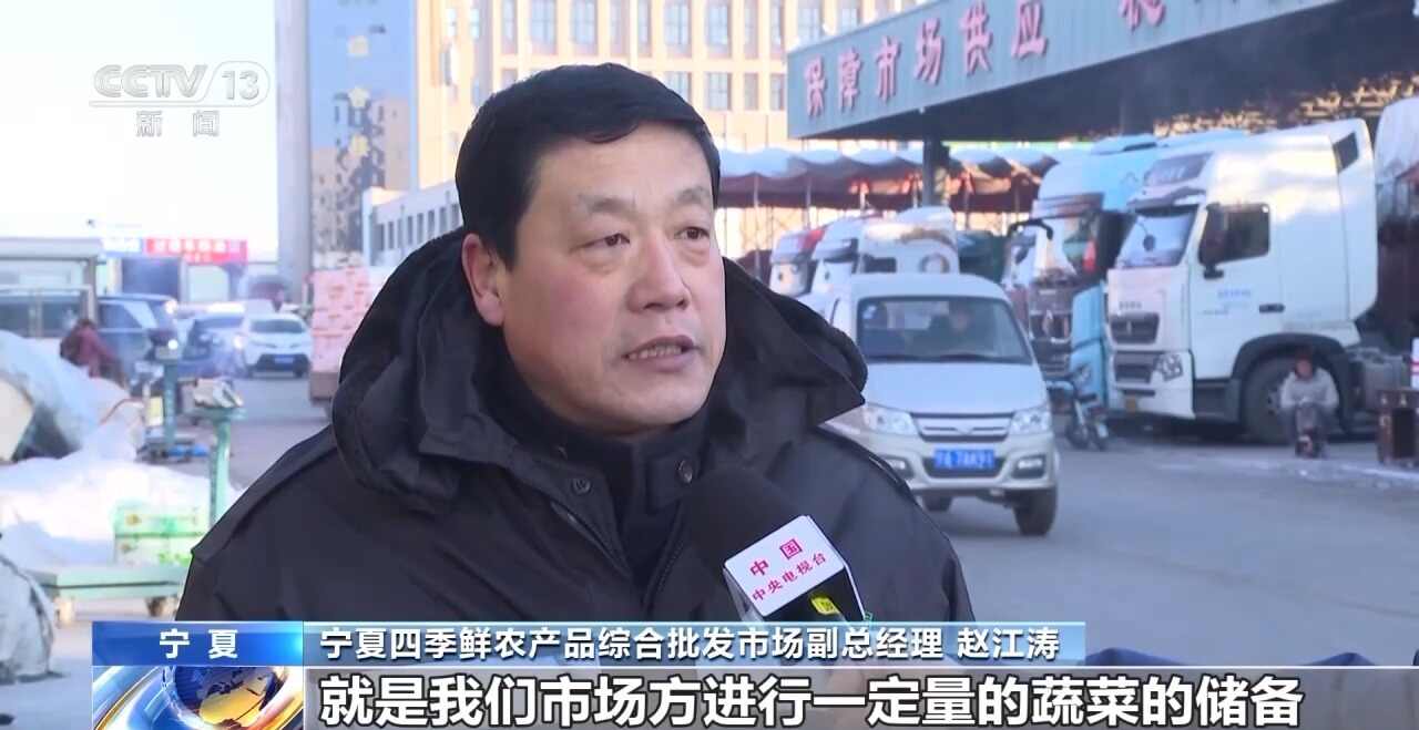 宁夏四季鲜农产品综合批发市场副总经理 赵江涛:一方面就是我们市场方进行一定量的蔬菜的储备,同时,我们的商户也利用自己的在市场以及周边的一些库房大量的储存,目前的这种动态储备可以保证两周之内的蔬菜供应。