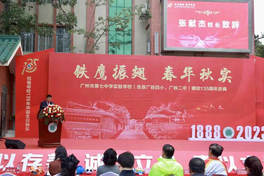 广州市第七中学实验学校党总支副书记、校长张献杰表示,建校以来,广大教职员工凭借“铁的意志,铁的精神”,为国家培养出获得国家科学技术进步特等奖的清华教授、享誉神州大地的导演、歌手、企业家等各行各业的优秀人才,在社会各界享有较高的声誉,“团结奋斗、永不言败、奋勇争先,是我们学校代代相承的精神力量,激励着学子在人生路上不畏挫折勇往直前,全面发展开拓创新。相信不抛弃、不放弃就会创造奇迹!”