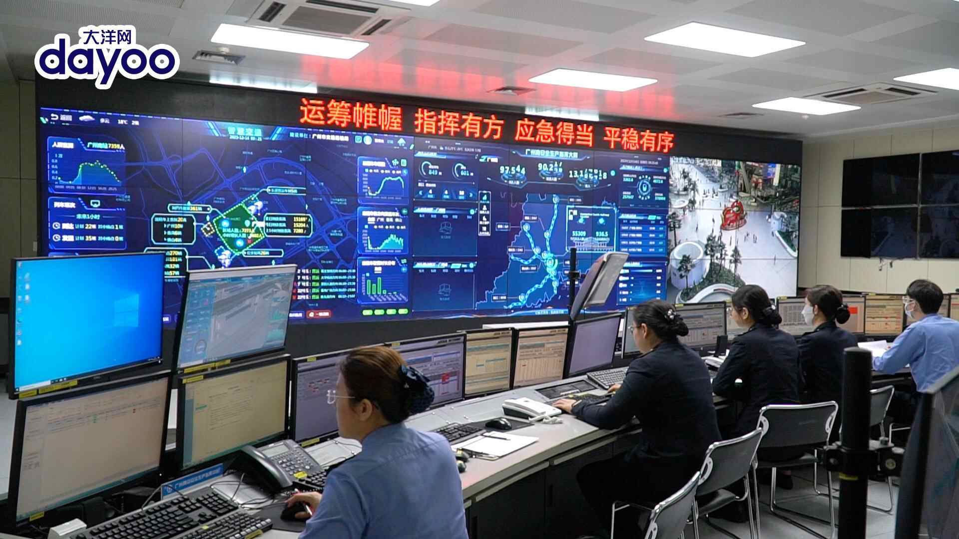 广州南站是粤港澳大湾区综合交通枢纽,担负着京广高铁、广深港高铁、南广高铁、贵广高铁、广珠城际线共5条线路的行车运输组织任和动车组出入库的行车组织工作。2023年1月29日,单日最高开行列车历史纪录达1158列,最繁忙的时候每40秒就可以接发一趟列车。2023年以来,广州南站共到发旅客1.74亿人次,日均到发客流有超过50万人次,每天有上万名旅客需要换乘。面对如此庞大的客流量,广州南站的有序运转,离不开其“智慧大脑”——广州南站安全生产指挥中心。