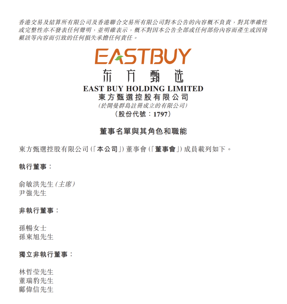 公告称,俞敏洪是中国知名的公众人物,对农产品及直播有着深厚了解。俞敏洪兼任董事会主席和行政总裁,有利于管理层高效落实持续发展的愿景。