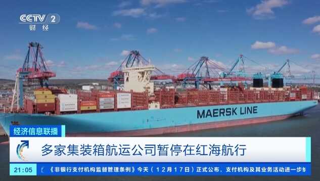 此外,据路透社15日报道,全球最大的集装箱航运公司马士基也暂停了所有通过连接红海和亚丁湾的曼德海峡的船只航行,直至另行通知。德国船运商赫伯罗特公司15日也宣布,暂停其集装箱船在红海的航行,直到12月18日。