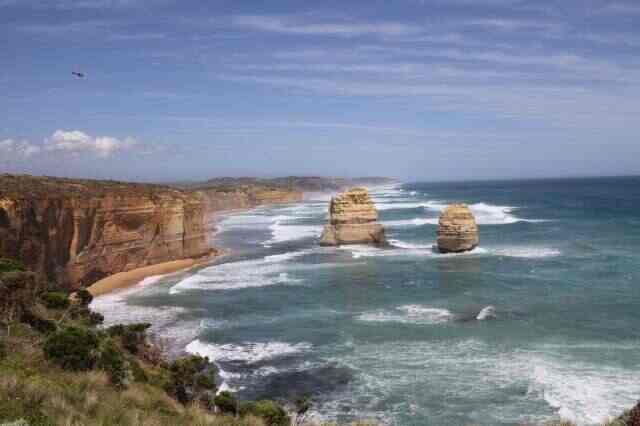 澳大利亚大洋路的十二门徒岩,是最著名的海浪侵蚀作用下形成的石灰岩之一。