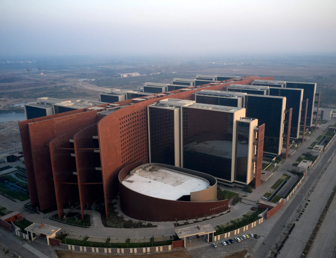 据悉,苏拉特钻石交易所位于印度总理莫迪的故乡古吉拉特邦苏拉特市,于2019年起兴建,耗资320亿卢比(约27.5亿元人民币)。
