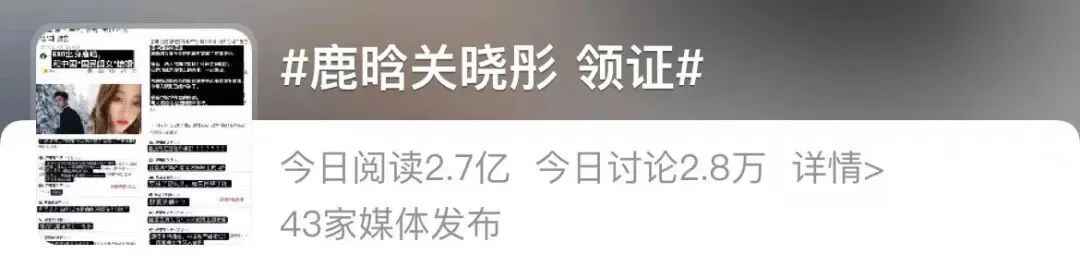 2022年11月,话题#鹿晗关晓彤 领证#突然登上微博文娱榜热搜榜首。原来,当日不少韩国媒体发布新闻,宣称鹿晗关晓彤领证结婚。报道中还写到,两人在交往了5年后,已经完成了婚姻登记,婚礼将于明年举办。