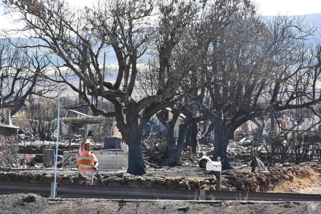 8月22日,工作人员在美国夏威夷州拉海纳镇进行修复工作。新华社记者高山摄