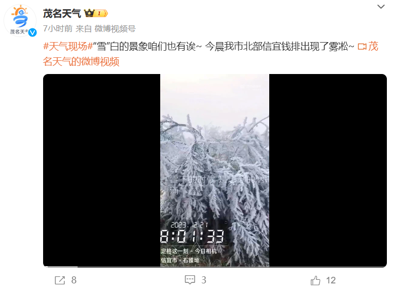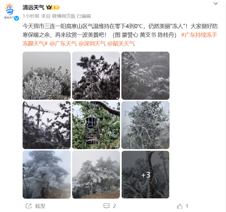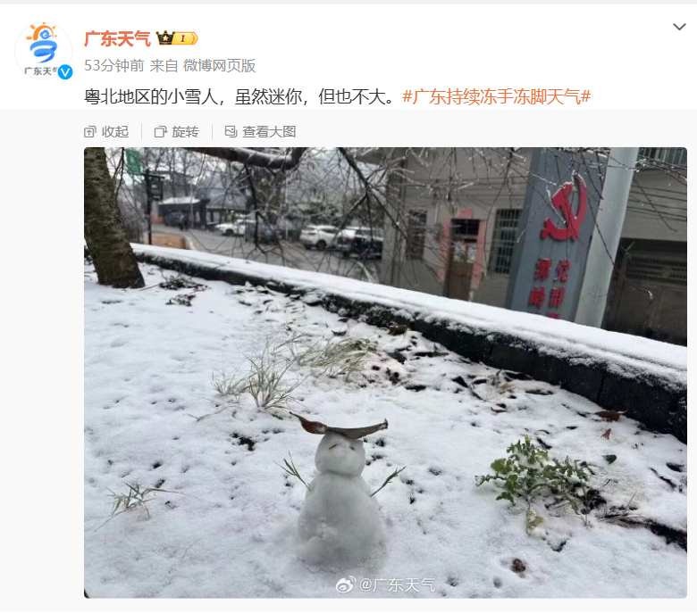 就在冬至的前一日,广东多地还下起了雪。网友评论:“终于不用出省赏雪了”。