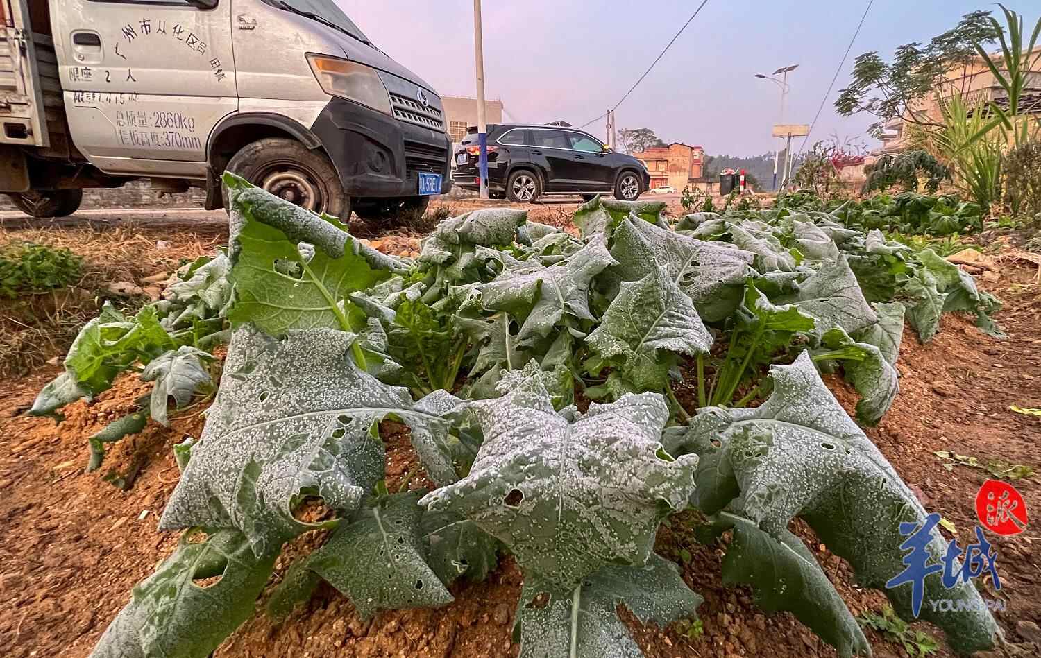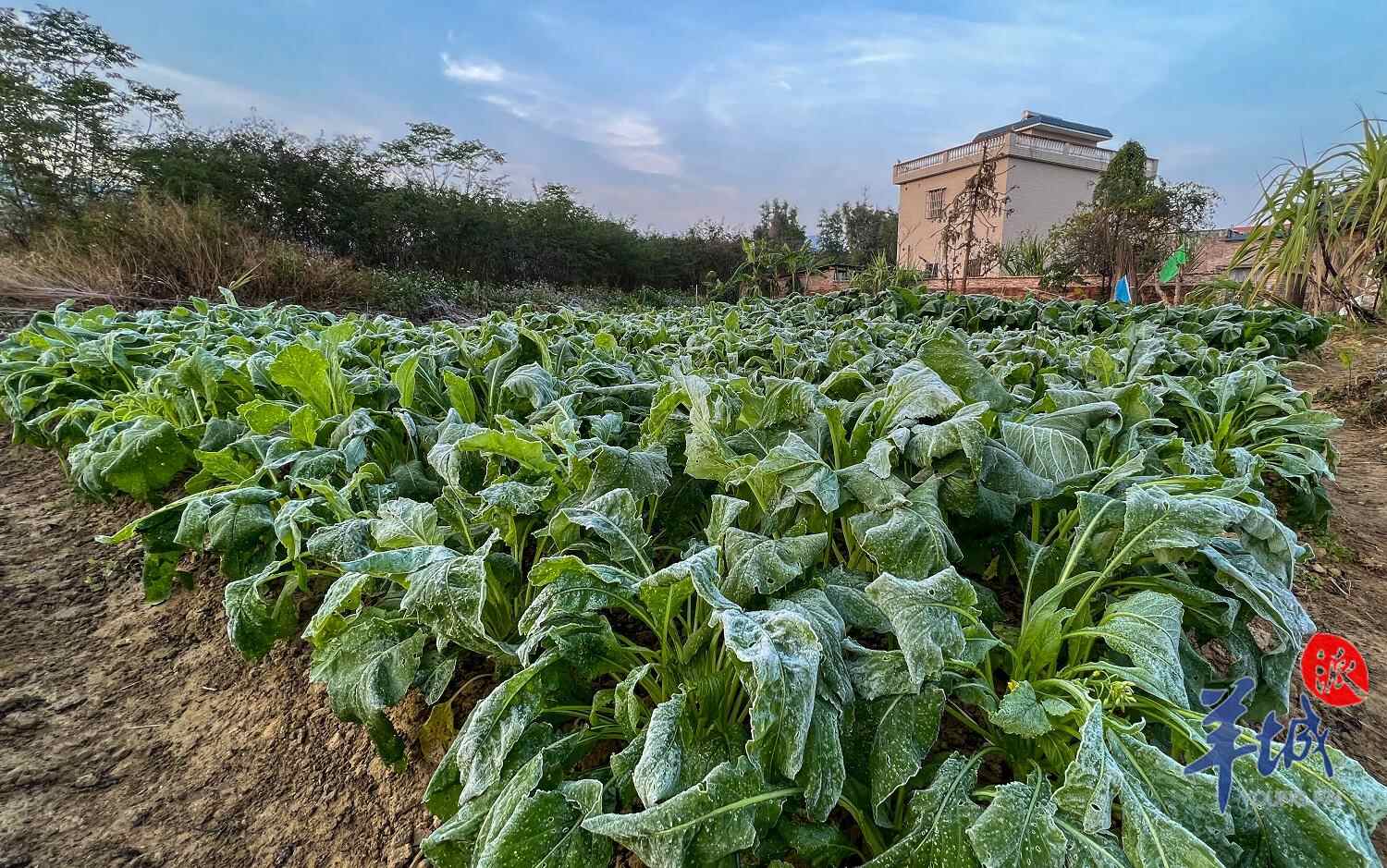 今晨,羊城晚报全媒体记者在吕田镇看到,当地出现水桶结冰、蔬菜结霜、车窗可“写字”等“冷门镜头”。一些早起的农民则为进一步低温做好防御工作。