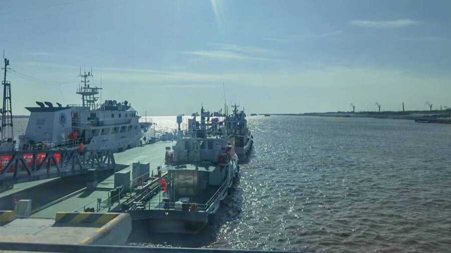 在长兴岛公务码头,多艘渔政执法船停泊在此,远眺就是广阔无垠的入海口。它于2023年正式投入试运营,结束了上海渔政执法船无自有码头可用的状态,为落实长江“十年禁渔”提供了有力支撑。