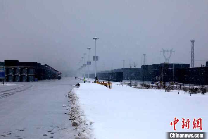 记者走进位于新疆石河子的中新建物流集团的多式联运国际综合物流港,已是隆冬,天空飘着雪花,但物流港里一派繁忙景象,满载集装箱的货车络绎不绝地进出。