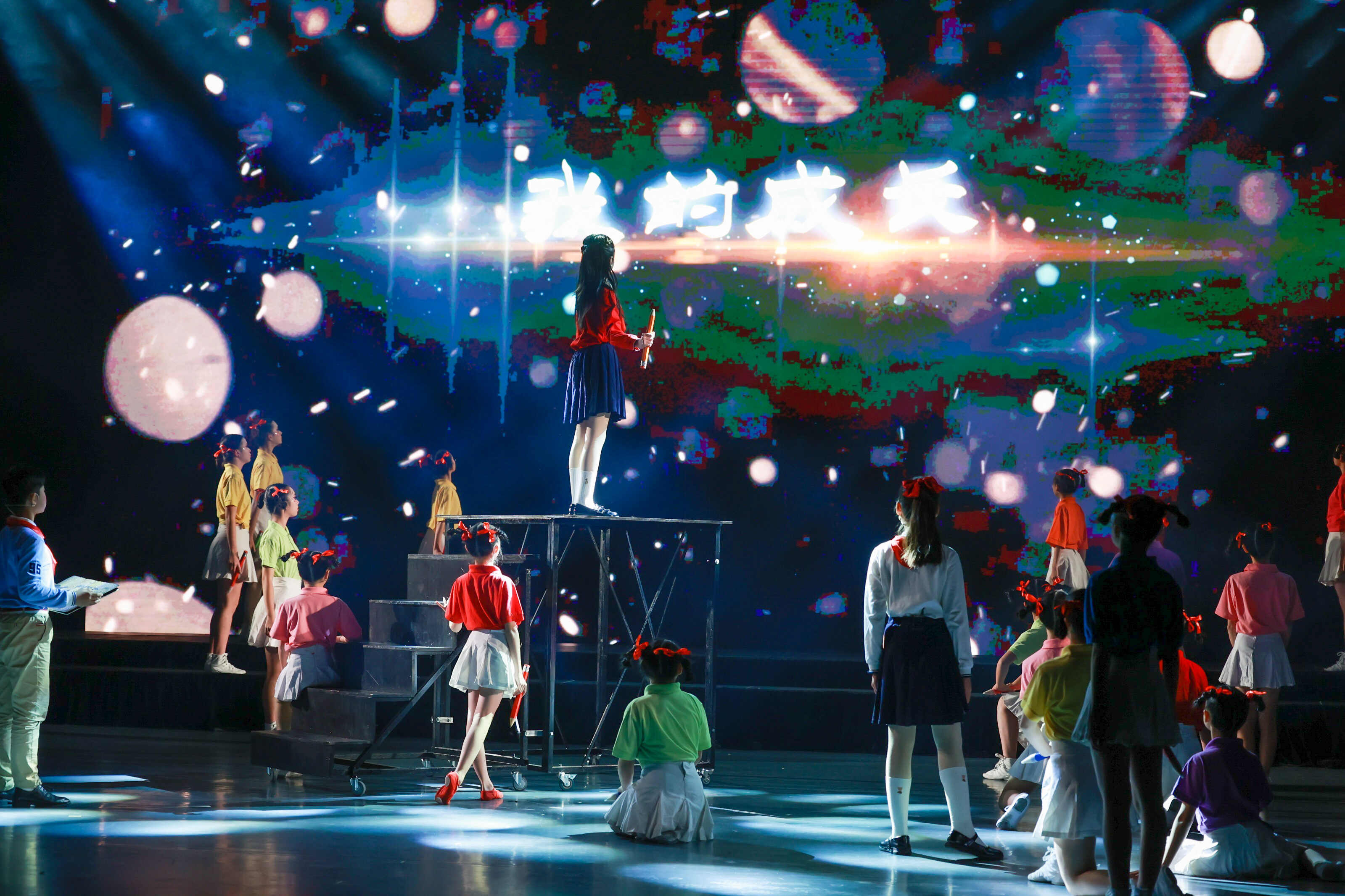 当天的教育成果展演由海珠区少年宫小海燕艺术团、小天使交响乐团等专业社团的400多名小演员参演,为现场和观看直播的观众们奉献了一场精彩的视听盛宴。整场展演活动通过管弦乐、合唱、舞蹈、武术、儿童剧等艺术表演形式,以“心向往·筑未来”为主题,晚会从序幕《时间的画笔》进入,“成长”“向往”“未来”三个篇章以音乐剧的形式点亮孩子们的一张张画和一个个梦想,以少年宫教师们辛勤耕耘的每一个节目展开,再以红色和传承篇章戏剧故事《红色的印记》和《传承的记忆》讲述少年宫这些年的守正创新,最后以教师们深情的告白情景朗诵《心向往》融入尾声《希望的画卷》,首尾呼应一气呵成,多面地呈现了少年宫66年的发展积淀。