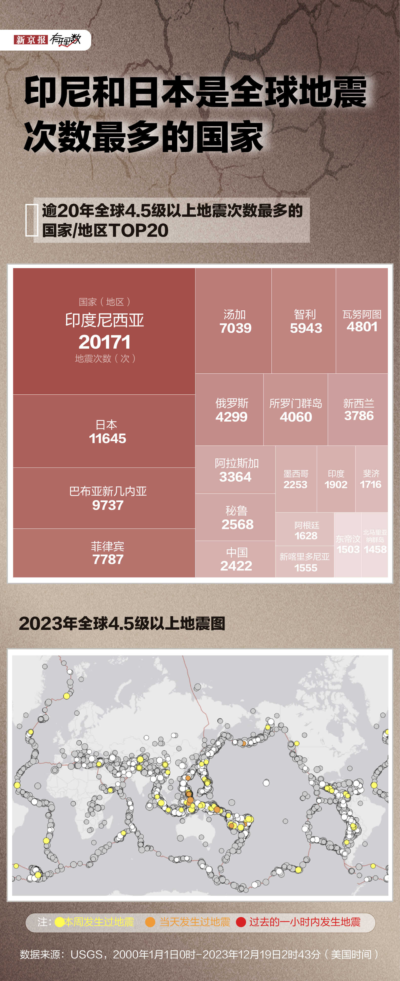 甘肃临夏州积石山地震已经过去五天了,但它带来的伤害和影响仍在持续,目前这场发生在深夜的6.2级强震已经导致148人遇难。就在甘肃发生地震后不久,12月19日新疆克孜勒苏柯尔克孜自治州阿图什市发生5.5级地震,震源深度10千米。据据印尼气象、气候和地球物理局消息,12月20日印尼北马鲁古省西北69公里处海域也发生了5.5级地震……
