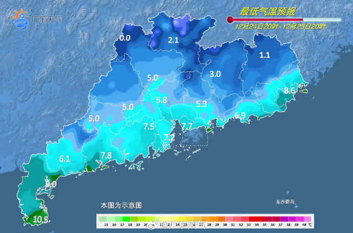 25日,全省晴到多云。早晨最低气温:粤北市县1~4℃,高寒山区零下3℃~1℃,南部沿海市县7~11℃,其余市县4~7℃,粤北和珠江三角洲北部市县有冰(霜)冻。