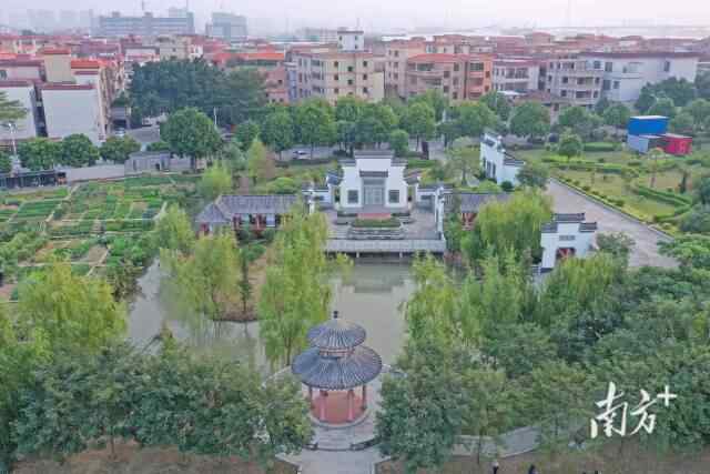 紫南村内,亭台楼阁与田园阡陌交错成一幅田园画。