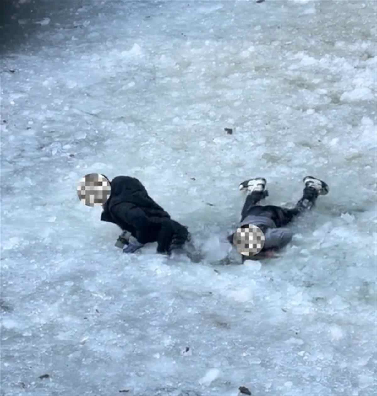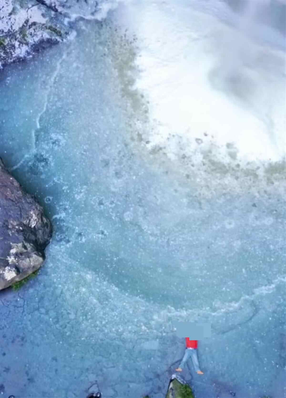 小美将这一过程拍了下来,发到社交平台上,提醒大家前来打卡时要注意安全。“我出发之前,就和朋友聊天,说担心水潭上的冰会碎掉,结果真的发生了。”小美说,她本来就不敢到冰面上去拍照,看到有人落水,马上就返回了。