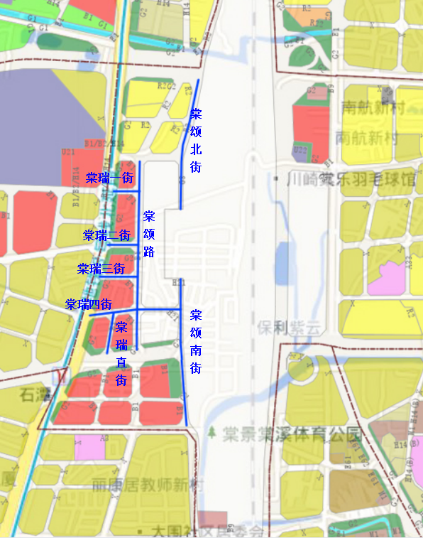 此次命名的8条规划道路位于广州白云站西侧、石槎路东侧,是广州白云站重要的交通组织通道,包括4条南北走向道路和4条东西走向道路,南北向分别为棠颂路、棠颂北街、棠颂南街、棠瑞直街,东西向分别为棠瑞一街、棠瑞二街、棠瑞三街、棠瑞四街。其中,有4条道路已基本建成,准备验收交付。这8条规划道路命名获批复,进一步加快道路建设进度,使广州白云站周边道路交通体系得到优化提升。