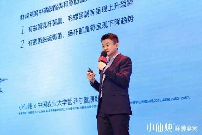 在此基础上,鲜炖燕窝的健康价值也得到了有力论证。小仙炖联合中国农业大学营养与健康联合实验室,在子代大脑发育、肠道方面的研究取得突破性成果。历经三年半的研究,小仙炖和中国农业大学首揭燕窝促进子代大脑发育作用机制,证实孕期和哺乳期燕窝滋补对宝宝大脑发育的重要性。该项研究成果成功被食品科学领域的国际知名SCI期刊《Journal of Functional Foods》收录。此外,联合实验室通过动物研究发现,服用鲜炖燕窝后肠道菌有益菌呈现上升趋势,有害菌呈现下降趋势,燕窝中的功能因子可以调控肠道菌群,充分证明食用燕窝可以调节肠道菌群,改善人体免疫。该研究成果成功收录于SCI期刊《光谱学与光谱分析》。