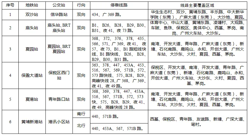 三是新增设公共汽车大沙东(黄埔海关)站,补充完善公交接驳覆盖。