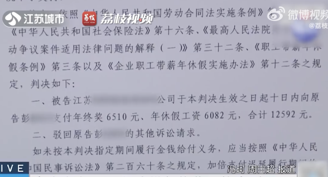 该案经溧阳法院审理后认为,彭女士一直工作至该年12月29日,因感染新冠病毒需休养才引发后续离职事宜,故尽管原告还需再工作一天才算年满,但综合考虑员工感染新冠病毒期间公司应安排必要的病休假等因素,认定彭女士该年工作满一年,可以领取该年度的年终奖。