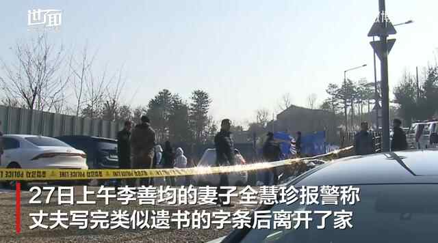 27日上午,李善均的妻子全慧珍报警称丈夫写完类似遗书的字条后离开了家,随后李善均被发现在车中身亡。警方透露现场没有他杀痕迹,李善均的家属不愿尸检。