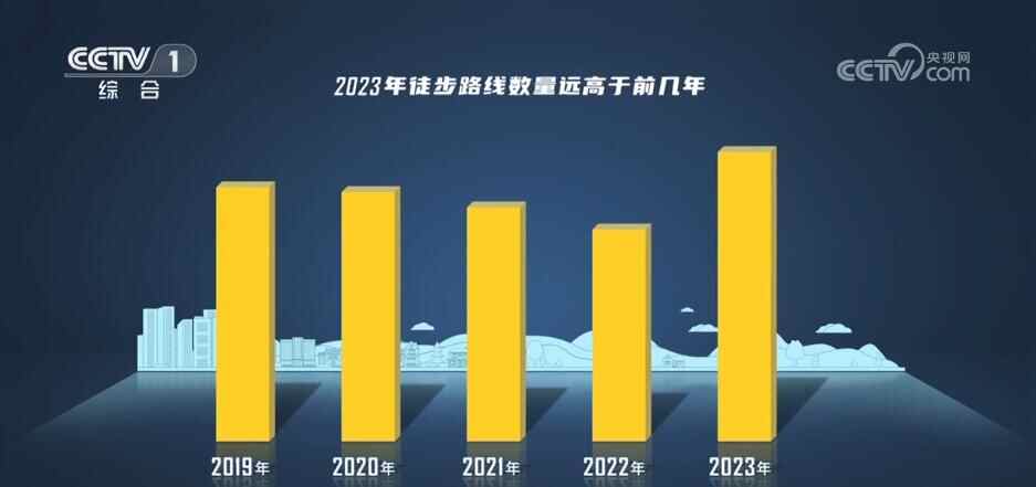 数据分析发现,2023年徒步路线的数量远高于前几年,相比2019年的涨幅接近15%。